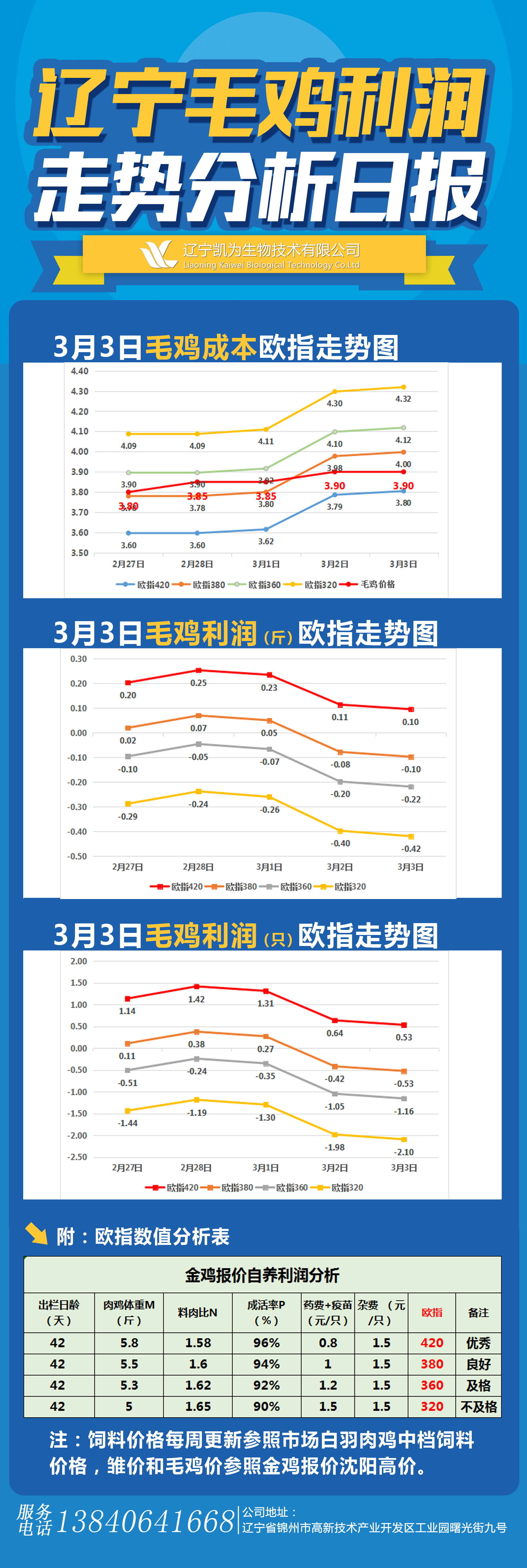 3月3日遼寧地區(qū)毛雞利潤(rùn)走勢(shì)分析圖