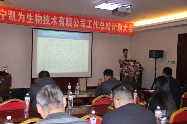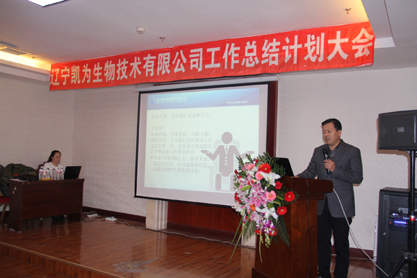 2017年1月6日下午,寒冷冬日,暖陽高照,美麗的渤海之濱錦州,遼寧凱為生物技術有限公司2016年工作總結和2017年工作計劃大會在華信大廈會議廳隆重舉行,遼寧凱為自2005年創(chuàng)建以來,歷時11年的發(fā)展歷程,我們積累了經驗,也展示了多年的成果,展望2017年未來的發(fā)展重點和方向,現在,凱為人踏著夢想而來,滿載而歸。未來,凱為人堅定地為公司添磚加瓦、壘筑高臺,讓夢想更加豐滿,讓基業(yè)更加長青。整個會議歷時三個小時,包括總經理王鐵良先生作年度工作總結、計劃報告,銷售部總經理趙福寬先生作銷售部年度工作總結、計劃報告,優(yōu)秀員工表彰等環(huán)節(jié)。會議進行中,掌聲數次響起,整個會場始終洋溢著振奮、進取、熱烈的氣氛,精彩紛呈,亮點鮮明。