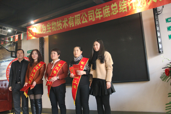 隨后,大會進行了“生產部優(yōu)秀員工”,“六年貢獻獎”,“十年貢獻獎”的表彰活動??偨浝硗蹊F良、銷售部總經理趙福寬、集團事業(yè)部經理景立坤、生產部經理肖營營,分別為獲獎員工頒發(fā)了榮譽證書、獎金或獎品,鼓勵他們在新的一年里繼續(xù)努力工作,再創(chuàng)佳績。