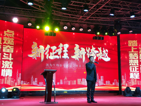 公司總裁王鐵良先生首先總結(jié)公司十余年的奮斗歷程,“從冰雪到綠原,那是冬天走向春天的路,從失敗到成功,那是披襟斬棘闖出來的路,凱為人十余載風(fēng)雨同舟,不負(fù)韶華。過去的一年是我們公司創(chuàng)新業(yè)績、重振區(qū)域品牌的一年,2019年公司不僅實(shí)現(xiàn)了銷售收入同比增長,而且公司新增養(yǎng)殖基地三個(gè),新建培訓(xùn)中心已納入養(yǎng)殖服務(wù)板塊,新建檢測中心納入客戶服務(wù)體系。實(shí)踐證明:我們一直用凱為的價(jià)值觀衡量我們的行動(dòng)向共同美好的愿景持續(xù)奮進(jìn)!正是因?yàn)槟銈兊母冻龊蛿y手奮進(jìn)才有今天的凱為。我代表公司感謝所有員工的努力和敬業(yè),同時(shí)更要感謝你們的家人,正是他們默默的支持和奉獻(xiàn),使你們能全身心的投入工作,在此,我衷心的祝愿你們健康快樂!萬事如意??!”