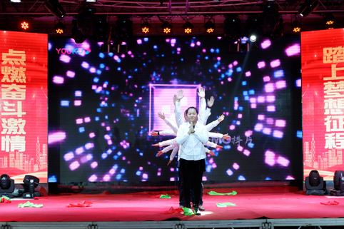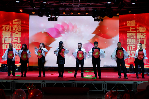 在聯(lián)歡會(huì)的現(xiàn)場,華麗舞臺(tái)燈光璀璨,背景制作喜氣祥和,一派喜迎新春的美好盛況,那一首首悅耳動(dòng)聽的歌曲,那一段段優(yōu)美豪放的舞蹈,那一個(gè)個(gè)風(fēng)趣搞笑的互動(dòng)小品.......在舞臺(tái)上傾情巨獻(xiàn),精彩紛呈,掌聲與喝彩此起彼伏,現(xiàn)場氣氛熱烈、喜氣、祥和,凱為人的魅力與風(fēng)采在這一刻光芒四射,凱為人的才藝在這一刻八仙過海??!