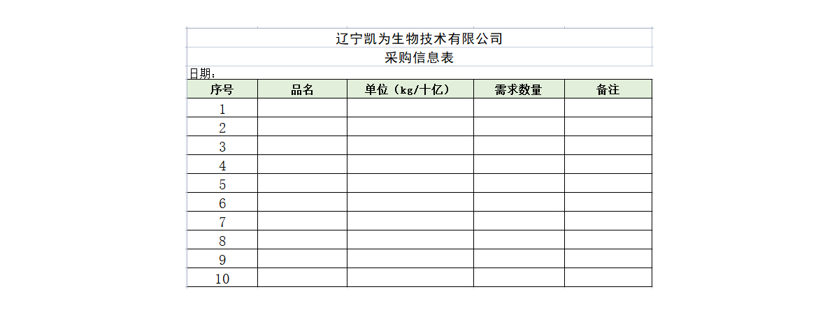 遼寧凱為生物技術(shù)有限公司采購信息表